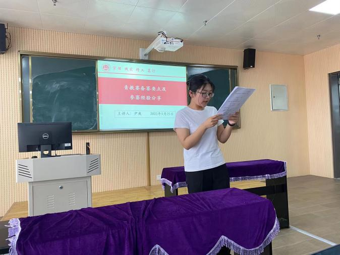 青年教师教学竞赛以“上好一门课”为理念,包含教学设计、课堂教学、现场答辩三个竞赛环节,从专业功底、教学技能、理论素养、临场应变能力等各个方面打磨青年教师的综合素质,对教学能力提升有着重要的作用。本次分享研习会主要围绕四个板块展开:全国青教赛基本概况、青教赛的竞赛准备、青教赛教学设计与课后反思设计、课堂的教学方法与艺术提升。尹爽老师首先简单介绍了青教赛的基本概况,然后对竞赛的三个环节分别做了详细介绍。在介绍过程中结合自身教学备赛过程中的经验与教训,指出青年教师应该热爱教学、用心教学、享受教学。通过这次分享交流会,使得各位青年教师更加深入了解了青教赛,也更加懂得作为一名高校教师应该如何去对待平时的教学。