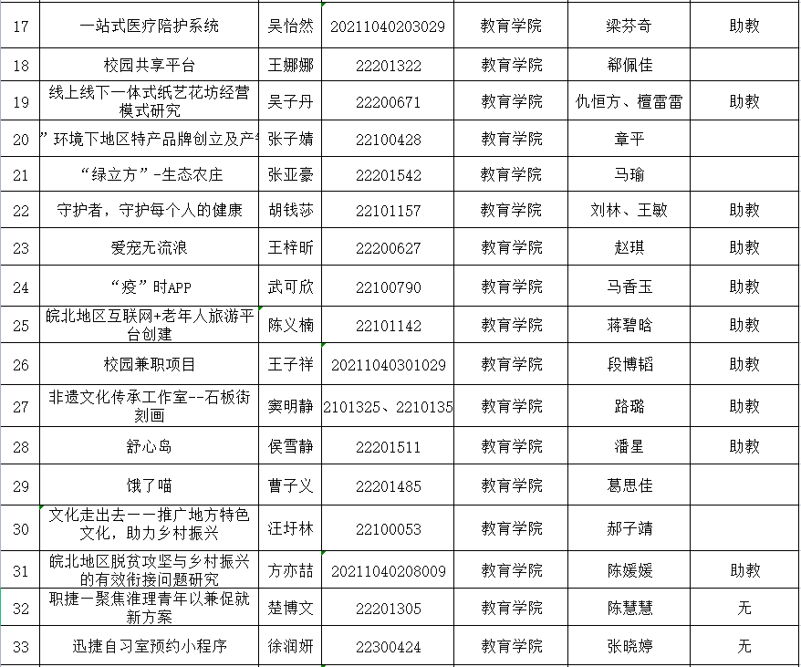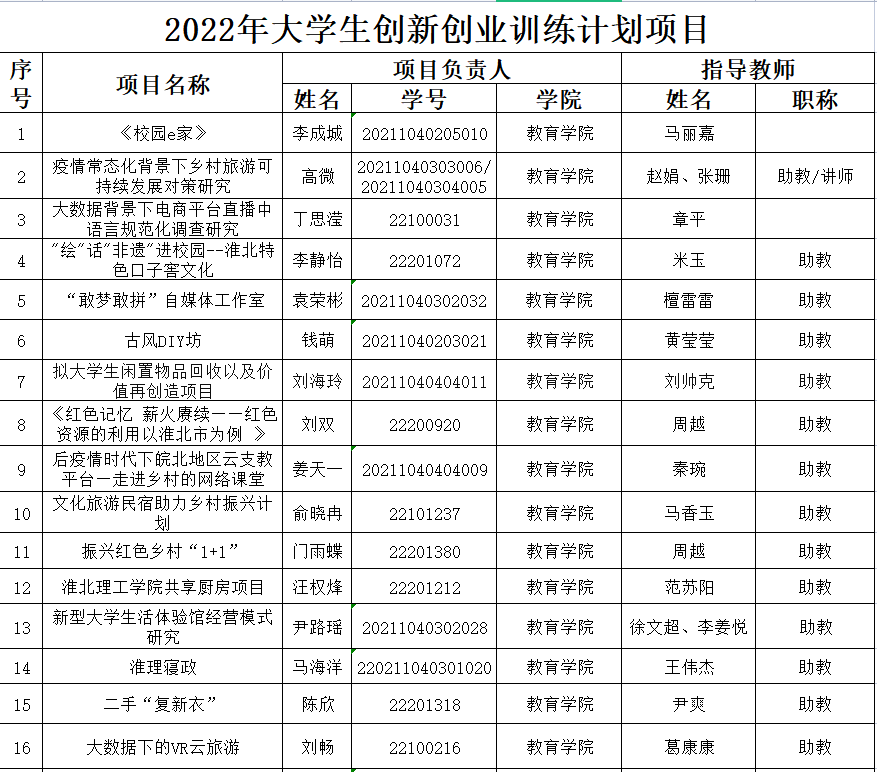 热烈祝贺我院李成城、高微、丁思滢、李静怡、袁荣彬等43名大学生成功获准2022年安徽省大学生创新创业计划项目省级立项。具体详细名单请见附件!