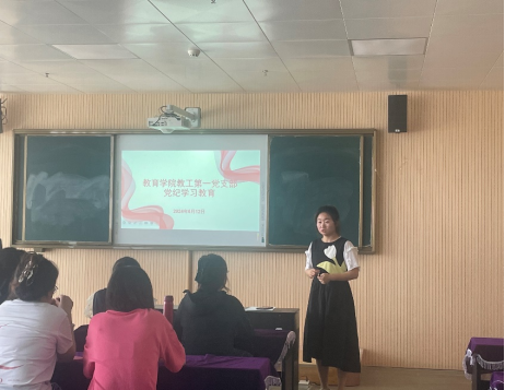6月12日下午,beat365中文唯一官网教工第一党支部开展党纪学习教育,党支部书记马香玉同志主持本次会议,全体党员教师参会。