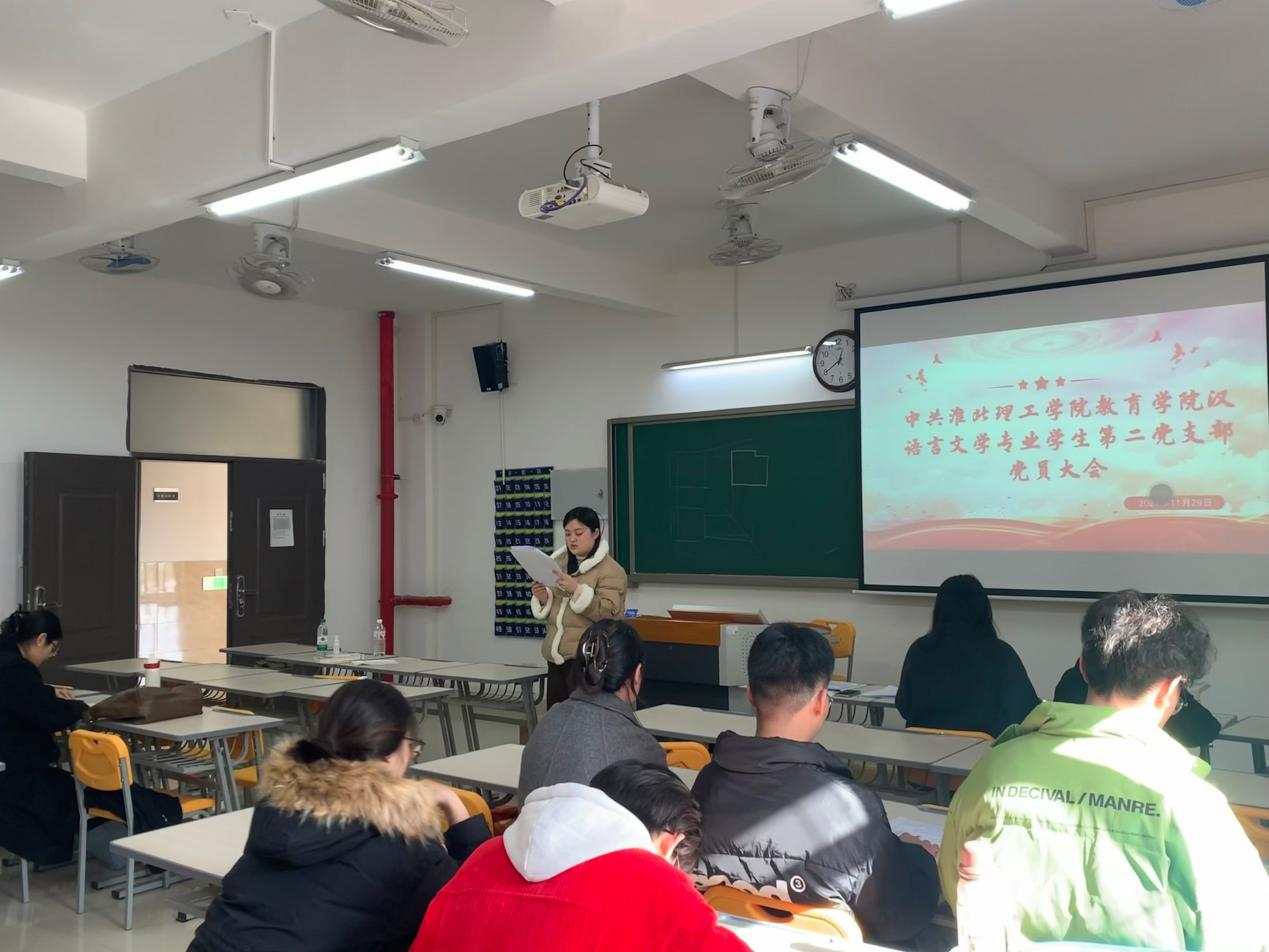 为进一步加强和推进学生党员队伍建设,严格落实党支部发展党员工作,切实提高学生党员的发展质量,增强党员队伍的生机与活力,11月28日中午,beat365中文唯一官网汉语言文学专业学生第二党支部在1教308教室召开了接收预备党员大会。会议由党支部书记张颖颖主持,支部全体党员参加。
