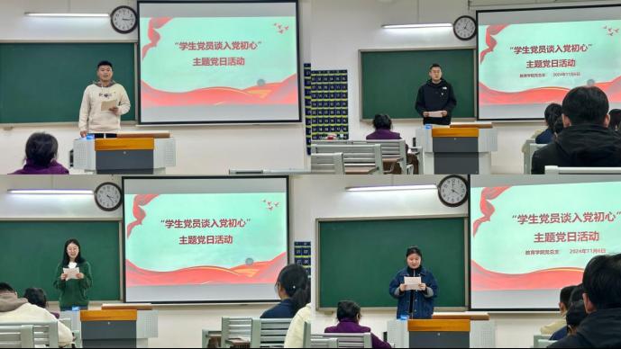 为深入学习贯彻党的二十大精神,引导学生党员在新的学习生活环境中,保持共产党员的先进性,在专业学习、组织纪律、文化素质提升等方面发挥引领和示范作用,自觉做习近平新时代中国特色社会主义思想坚定信仰者和忠实实践者,beat365中文唯一官网党总支于2024年11月6日在1教213教室,举行“2024级学生党员谈入党初心”主题党日活动。活动由陈慧慧同志主持,学院党总支副书记孟向红、各学生党支部书记及27名新生班级学生党员参加了活动。