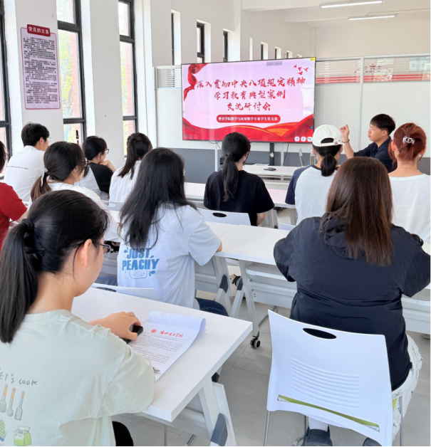 活动中学生党围绕员们围绕中央八项规定学习教育展开了热烈讨论。学生党员代表丁洋表示:“作为新时代青年,我们要从细节入手,牢记勤俭节约、务实担当的作风,将八项规定精神内化于心、外化于行。”随后,郭鸿鑫老师带领同学们一起观看案例视频并举例模范毕业生党员事迹,要求2026届毕业生党员要充分发挥自身在班级带头作用,做好考研学风与实践就业工作,在自我提升中做好榜样引领。