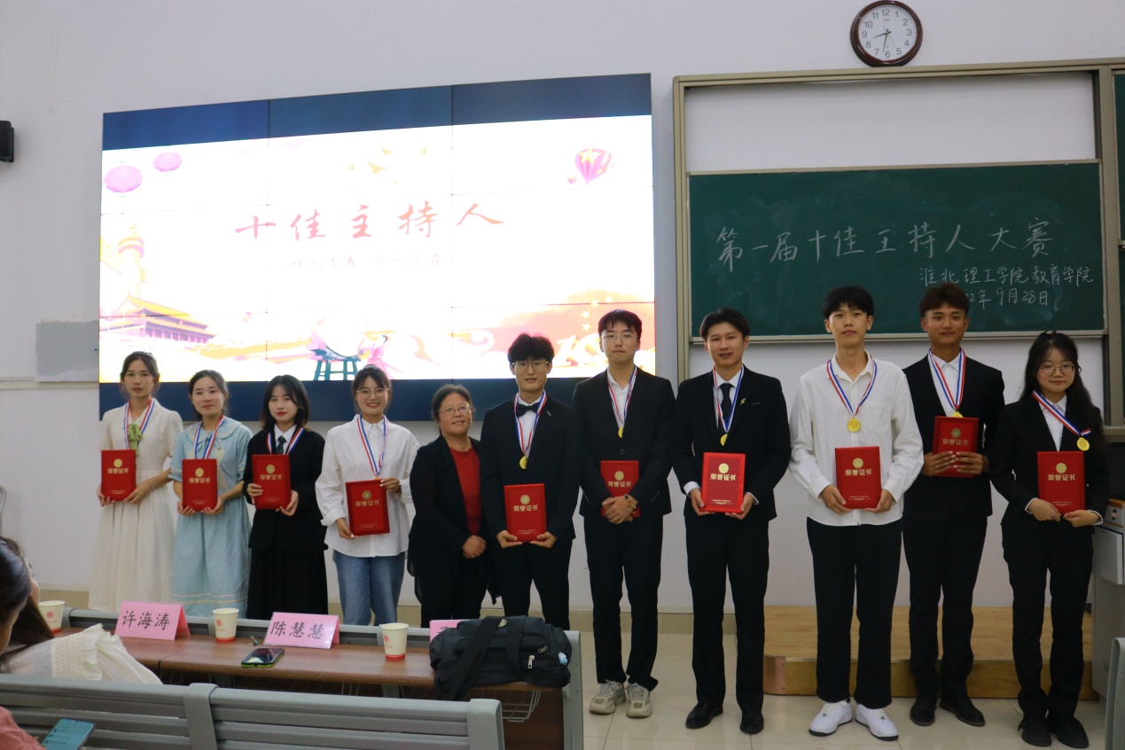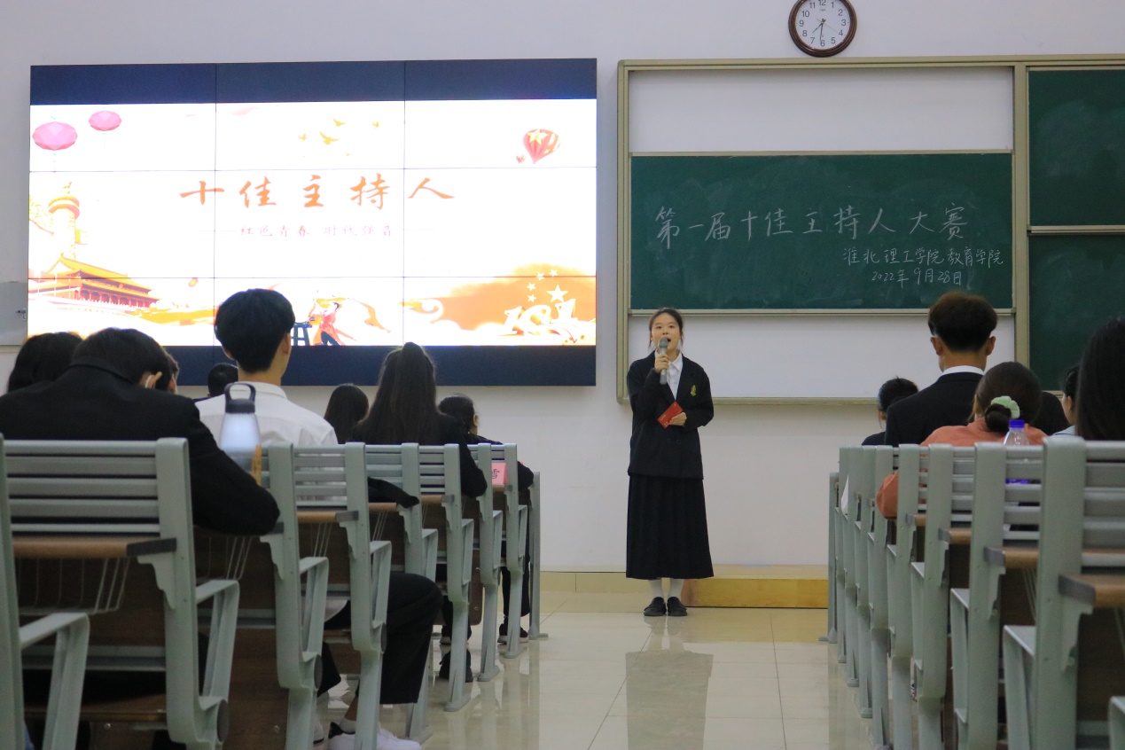 灿烂的笑容,青春的面孔,激情洋溢着的智慧在舞台上尽情绽放。9月28日晚,beat365中文唯一官网在1教121室举行“红色青春,时代强音”第一届十佳主持人决赛。学院分管副书记孟向红及部分辅导员老师参加了本次比赛并担任评委。