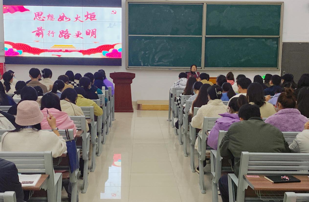 11月19日,beat365中文唯一官网副院长、党总支副书记孟向红带领学员们集中学习培训教程的第二章——中国共产党的指导思想。孟院长以“思想如火炬,前行路更明”的主题,向同学们介绍了马克思主义的科学思想体系。中国共产党在百年奋斗的伟大实践中,坚持一切从实际出发、坚持理论创新,不断推进马克思主义中国化时代化,在马克思主义中国化进程中,产生了毛泽东思想、邓小平理论、“三个代表”重要思想、科学发展观、习近平新时代中国特色社会主义思想等理论成果,开辟马克思主义中国化时代化新境界。孟院长激励学员们要认真学习习近平新时代中国特色社会主义思想体系,深刻理解“十个明确”、“十四个坚持”、“十三个方面成就”,从党史学习中领悟中国共产党为什么“能”、马克思主义为什么“行”、中国特色社会主义为什么“好”,坚定对马克思主义的信仰,对中国特色社会主义和共产主义的信念,对党和人民的忠诚,做到学有所思、学有所悟、学有所得。