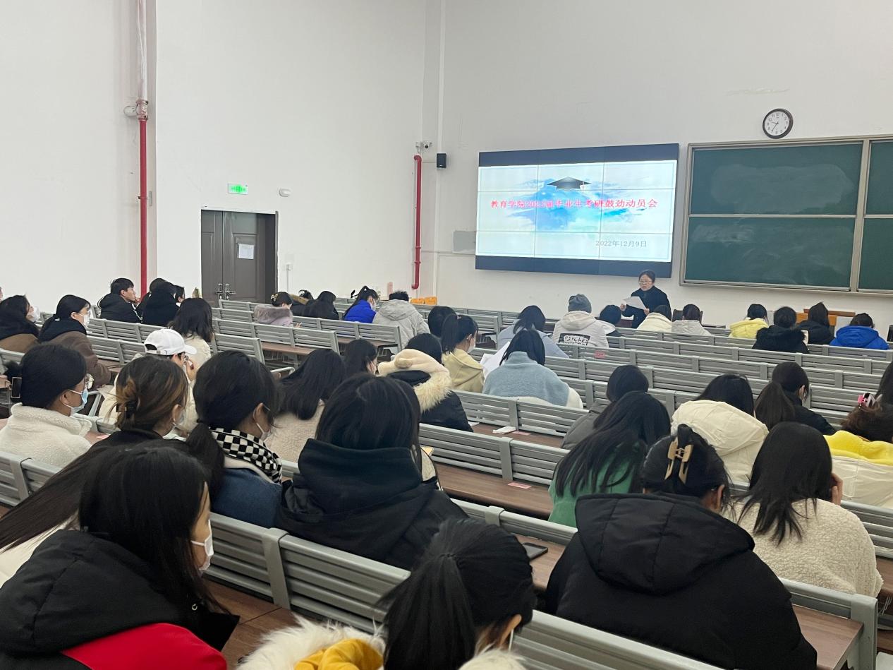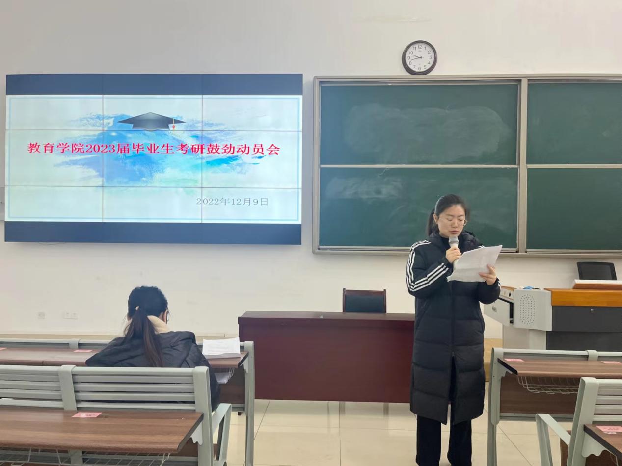 全力以赴促就业,扎扎实实抓考研,为促进同学们更好地了解考研知识,掌握考研方法,调整考研心态。12月9日上午,beat365中文唯一官网在1号教学楼121教室召开2023届毕业生考研鼓劲动员会,会议由学院党委副书记孟向红主持,全院汉语言文学、英语、数学与应用数学、学前教育四个专业230余名考研的同学、2023届毕业生辅导员等参加了会议。