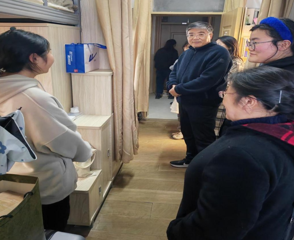 学院领导、辅导员老师与同学们零距离交流受到同学们的欢迎。王院长叮嘱同学们新学期要注意宿舍安全和谐,保持宿舍卫生整洁,确保新学期以最快的速度适应校园生活,进入学习状态,期末考试在即,希望大家认真复习,考取优异的成绩。孟院长嘱咐同学们注意身体健康,勤通风、多运动,养成良好的生活习惯,努力营造积极向上、和谐友好的宿舍氛围。辅导员老师们在走访中还将同学们的需求和需要解决的问题一一记下,尽快帮助同学们落实。同学们感谢各位老师的关怀并表示新学期定不负众望,努力学习,严格遵守校规校纪,以崭新的面貌迎接新的挑战。