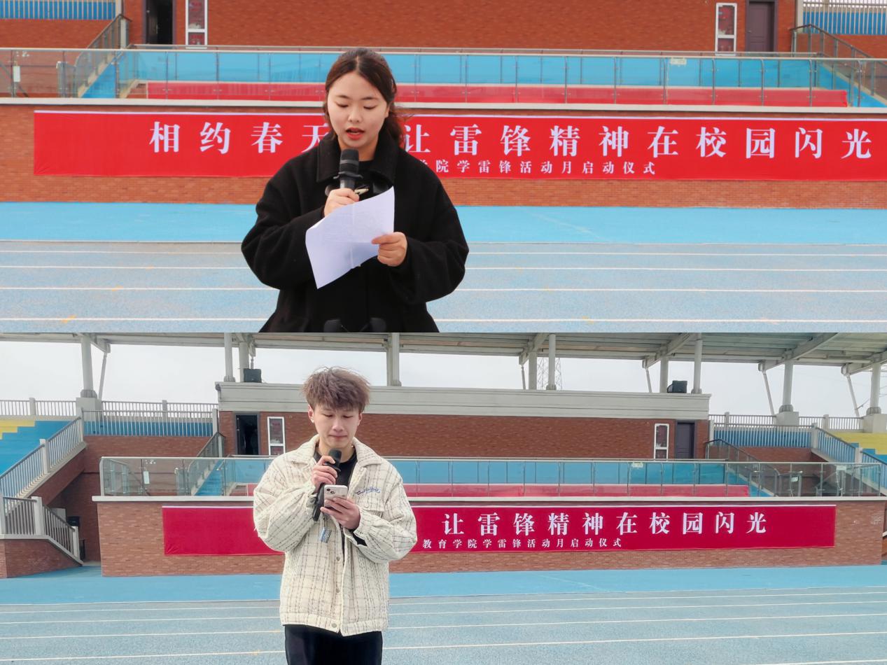 2022级汉语言文学2班的张蕊和2022级英语专升本1班伍申成作为学生代表发言。他们表达了践行习近平总书记“把握雷锋精神的时代内涵和实践要求”教导的决心,表示要树立崇高理想追求,激发爱党爱国爱社会主义巨大热情,做新时代“雷锋精神”的践行者和传承人,让雷锋精神在校园发扬光大,融入自己的日常学习生活,并化作自觉行动。