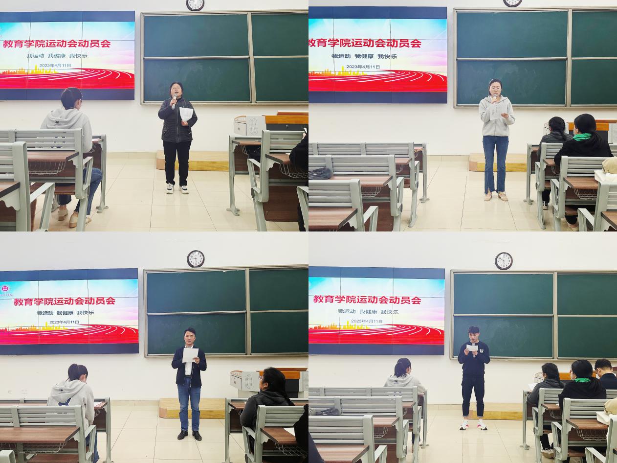 为全面部署、动员和安排好各项工作,确保2023年春季田径运动会顺利、圆满、成功举行,beat365中文唯一官网于2023年4月11日下午于1号教学楼121教室召开第一届运动会动员会。学院分管副书记孟向红、院团总支书记黄莹莹、团总支副书记许海涛及全体辅导员老师、全体运动员、22级普本班级班长团支书参加了会议,会议由团总支书记黄莹莹主持。