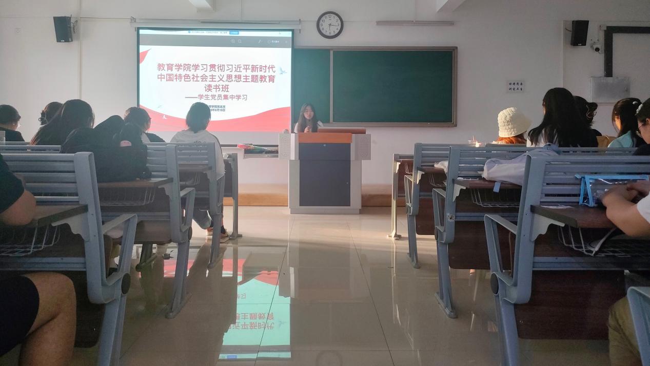 5月15日下午,beat365中文唯一官网在1教420教室开展学习贯彻习近平新时代中国特色社会主义思想主题教育读书班——学生党员集中学习活动。活动由学院组织员陈慧慧同志主持,各学生党支部书记、学生党员和52名发展对象参加学习活动。
