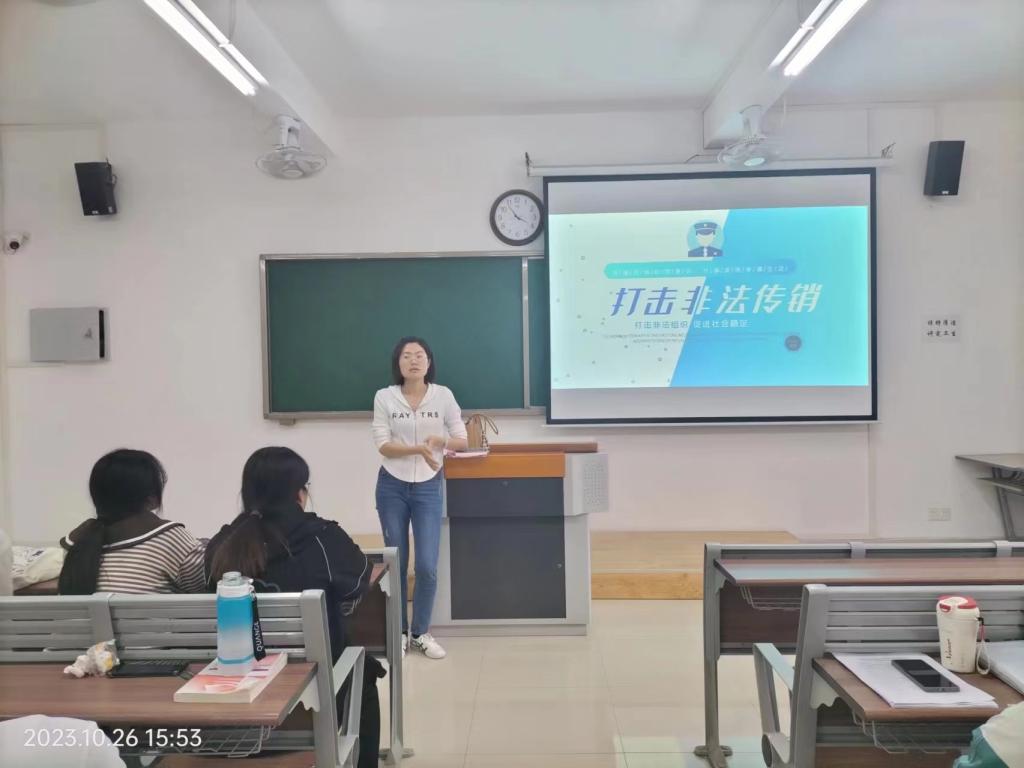 为提高学生安全防范意识,了解传销的危害,自觉养成防范抵制传销的习惯,beat365中文唯一官网各班级于2023年10月23至27日,各班级在辅导员老师分主持下开展了“抵制传销,共建和谐校园”主题教育活动。辅导员老师们结合学校实际,收集整理有关传销危害性资料,利用主题班会、现场模拟、小组讨论、网络宣传等形式,开展“抵制传销,共建和谐校园”主题教育活动。