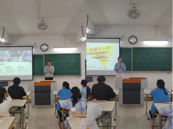 活动邀请了2022年大学生创新创业计划获奖项目指导教师檀雷雷、张晓婷和部分获奖作品学生代表进行经验分享。檀雷雷老师从专业的角度分享了指导大学生创新创业项目的经验和体会,并结合实际案例,从项目选题、团队组建、优化项目结构、计划书撰写等方面,详细介绍了大赛各环节的注意事项,鼓励同学们积极投身于创新创业实践中去。张晓婷老师以“你是下一个成功的候选人”为题鼓励同学们跨界学习,敢于实践、敢于创新。2022年大学生“挑战杯”、创新创业计划获奖项目学生代表袁荣彬、徐润妍、张蕊、倪金星分别分享了参赛经验和体会,他们的共同感言是大学生应该利用自己所学,了解“市场的痛点”,勇于尝试,要有“行则将至,做则必成。一念既出,万山无阻。”的勇气,在参赛中增长自己的实践才干,磨炼自己的意志品质,建立良好的团队合作精神。