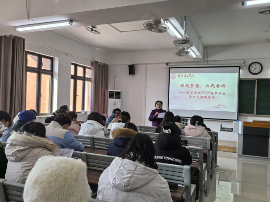 考研的号角已经吹响,对于即将踏上考场的学子们来说,这是一段既充满希望又充满挑战的时光。为缓解考研生的备考压力,传递温暖与力量,12月18日下午,beat365中文唯一官网在2教522教室成功举办“超越梦想,决战考研”——2025届毕业生考研送温暖活动。学院党总支副书记孟向红、书记助理黄莹莹、毕业班辅导员以及2025届毕业班考研学生代表参加了本次活动。