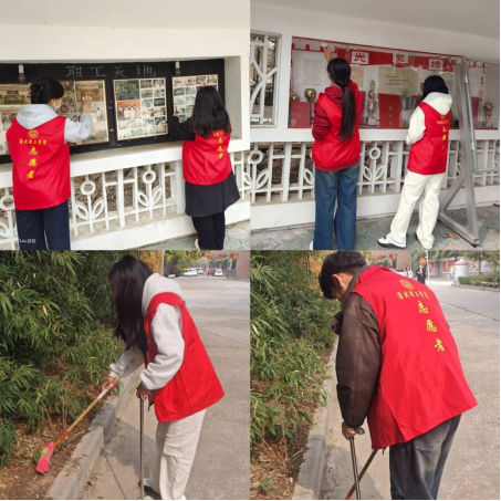 淮北老电厂为淮北市的发展做出过巨大贡献,老电厂文化街区的建立是为了让人们了解淮北的工业历史,感受文化的传承与魅力。为了让文化街区环境更加优美,志愿者们手持清洁工具对老电厂街区的文化墙、历史宣传栏进行细致清理。大家或踮脚轻扫文化墙上尘封的图文,或弯腰清扫街区的落叶与杂物。尽管清扫过程中灰尘弥漫,志愿者们的脸上、身上沾满了灰尘,但大家没有丝毫抱怨,反而越干越有劲。