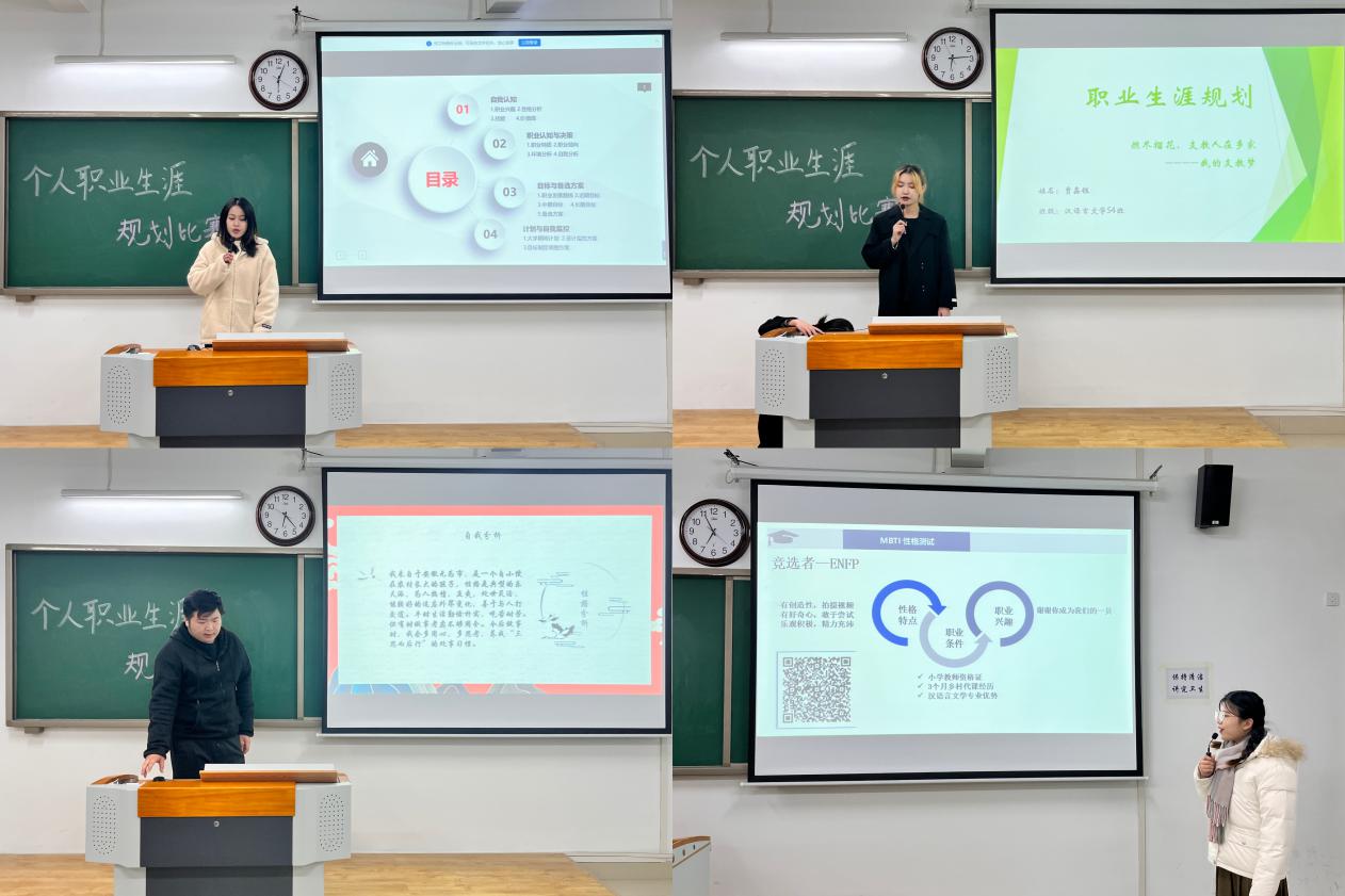 为落实立德树人根本任务,发挥“以赛促学、以赛促教”的积极作用,进一步深化大学生职业生涯规划和创新创业教育,提升大学生职业生涯规划能力,为未来职业发展奠定基础。beat365中文唯一官网自10月中旬以来在全体2022级专升本学生中开展了“职业生涯规划大赛”活动,活动得到了同学们的热情支持和广泛参与,参赛项目分职业规划类和创新创意类两类,经班级初赛后,最终共28个项目进入本次院级决赛。决赛于12月2日晚在1号教学楼413、414、415、416教室分组举行,各比赛小组评委由辅导员老师担任。