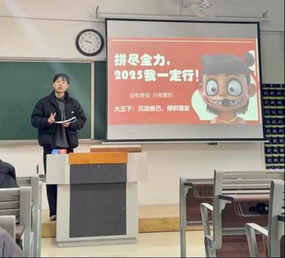 在主题班会上,辅导员们鼓励同学们及时调整状态,尽快从寒假放松的氛围中回归到紧张有序的学习生活中。提醒缓补考的同学们做好复习迎考的准备,同时着重强调了新学期的学风建设,做好课堂点名、上课手机入袋的各项工作。辅导员强调,新学期是新的起点,同学们要以积极向上的态度迎接新的挑战,制定切实可行的学习计划,努力提升自身综合素质。