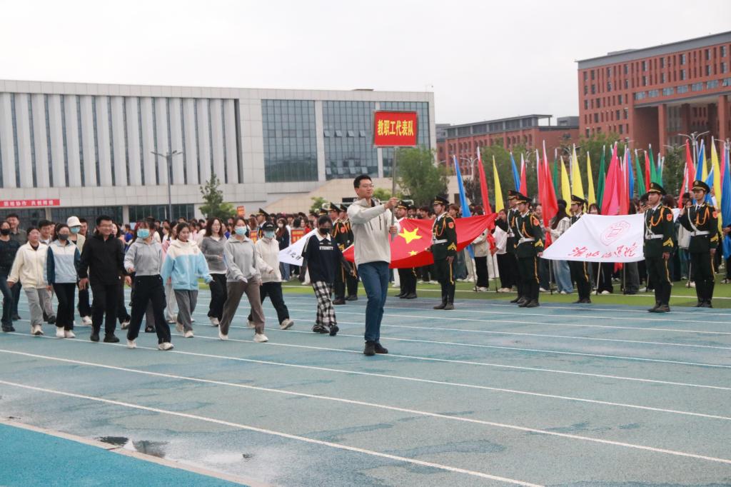 2025年5月9日上午8时,beat365中文唯一官网第三届田径运动会开幕式在学校田径场隆重举行。党委副书记、校长杨兵,党委书记朱德顺,副校长郑来纪以及各二级学院院长等学校领导共同出席了本次开幕式,与全校师生一同见证这一体育盛会的开启。副校长汪建利主持开幕式。