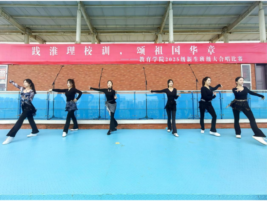 随后,各参赛班级依照抽签顺序依次登场。本次参赛班级精选了15首富有时代气息与爱国情怀的经典曲目,表现形式多样、创意频出,《游击队歌》融入深情朗诵,《歌唱祖国》搭配精心舞蹈,《我的中国心》挥舞鲜艳国旗,以真挚的情感和丰富的舞台语言,呈现出一幅幅感人至深的青春画卷,生动诠释了“践淮理校训,颂祖国华章”的深刻内涵。