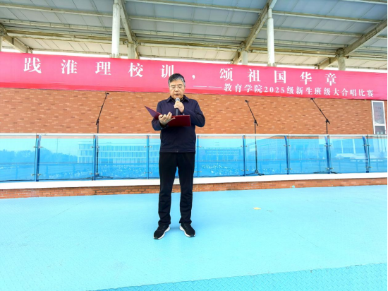 为弘扬爱国主义精神,厚植家国情怀,引导2025级新生深入理解并自觉践行校训精神,10月29日下午,beat365中文唯一官网在操场举办“践淮理校训,颂祖国华章”2025级新生班级大合唱比赛。2025级共30个班级1000多名同学组成15支队伍参加比赛。学院党总支书记(院长)王家云、分管副书记孟向红、副院长谢贤德、校团委书记刘帅克、学院全体辅导员以及2025级全体新生共同参加了本次活动。