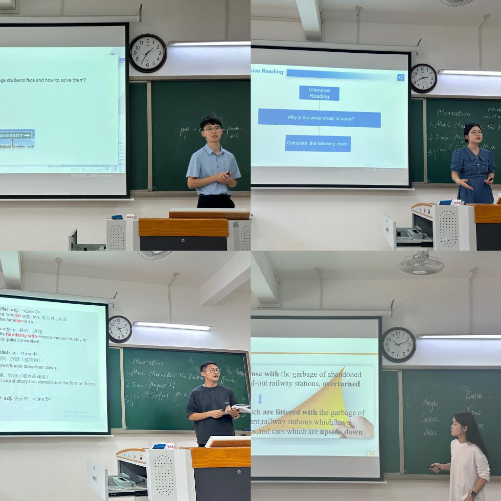 活动包括新进教师试讲和指导教师点评环节。新进教师先进行10-15分钟的授课,展示自己的教学理念、教学设计及教学方法。指导教师认真做好听课记录,根据各位新进教师的课堂展示逐一提问并作出点评,给出试讲成绩。