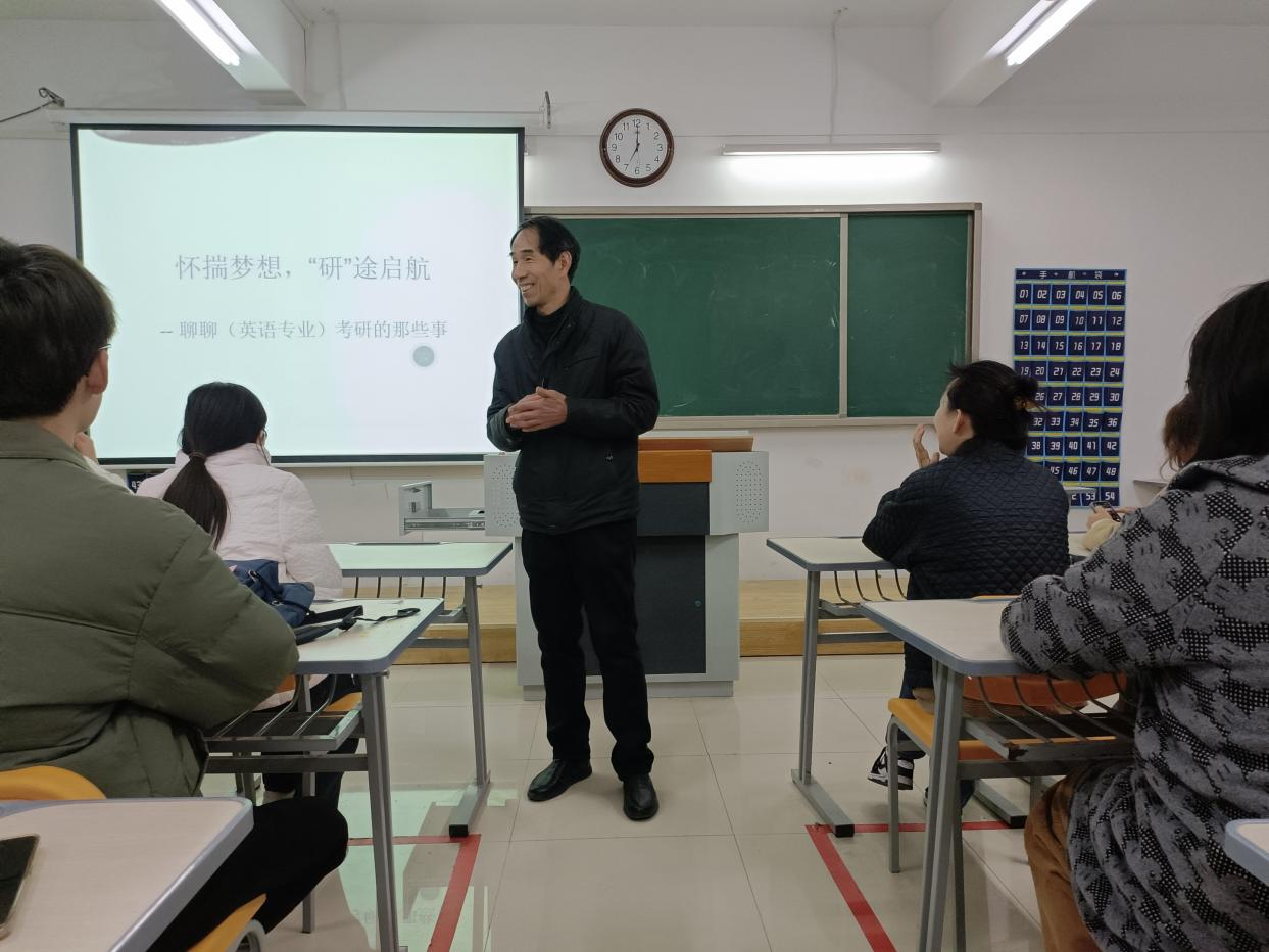 3月13日晚7点,beat365中文唯一官网在二教322教室开展英语专业考研辅导专题讲座。本次讲座面向2021级、2022级普本、2023级专升本学生。讲座由beat365中文唯一官网副院长谢贤德副教授主讲,全体英语教师列席。此次讲座旨在为beat365英语专业考研学生提供英语考研的相关信息和备考策略,帮助他们更好地准备即将到来的考研挑战。