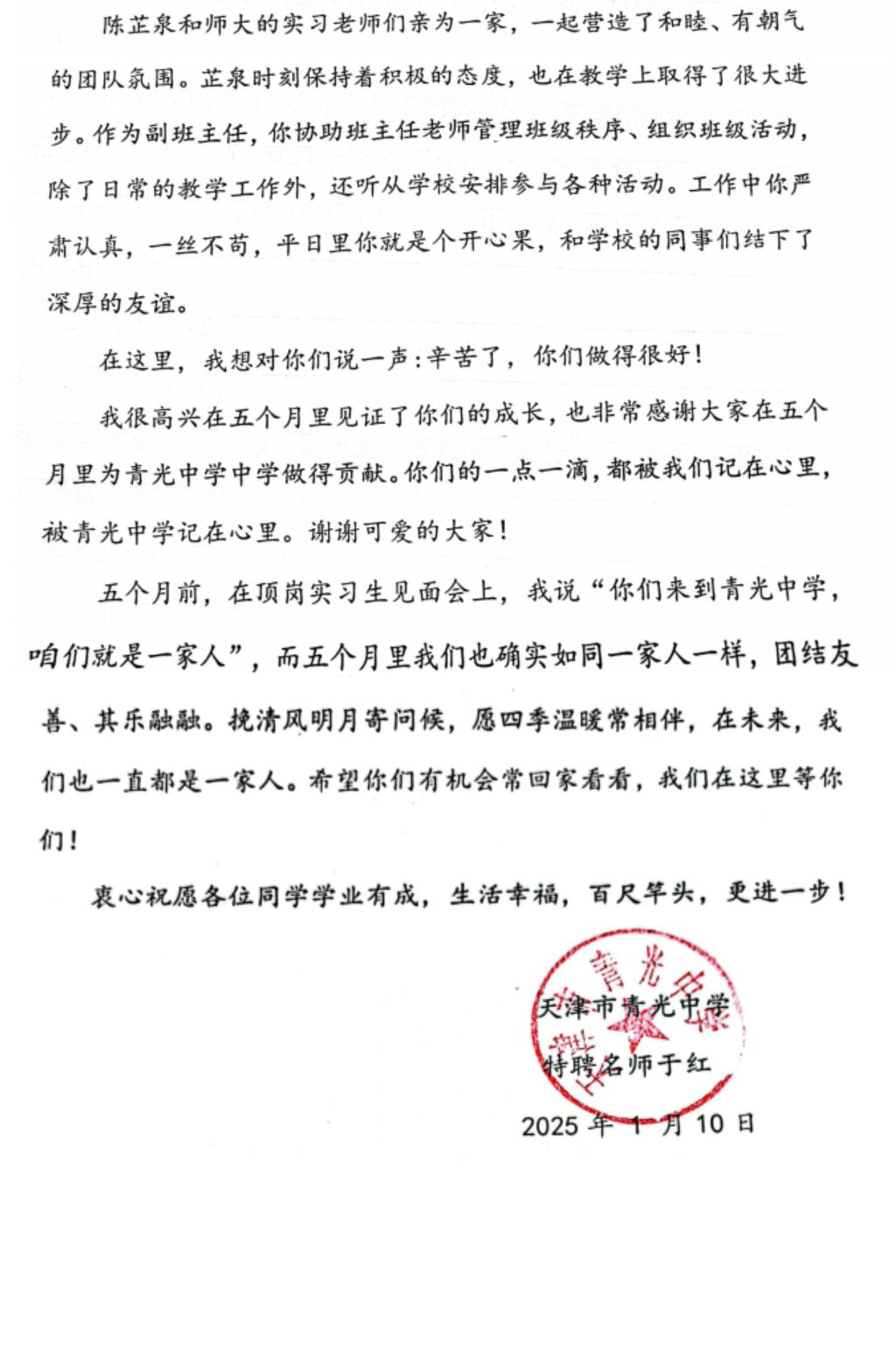 对于实习生的表现,实习学校给予了充分的肯定,他们表示,实习老师工作学习非常积极努力,品德优异,教育素养高,展现了淮北理工践实笃行的严谨的办学育人作风。