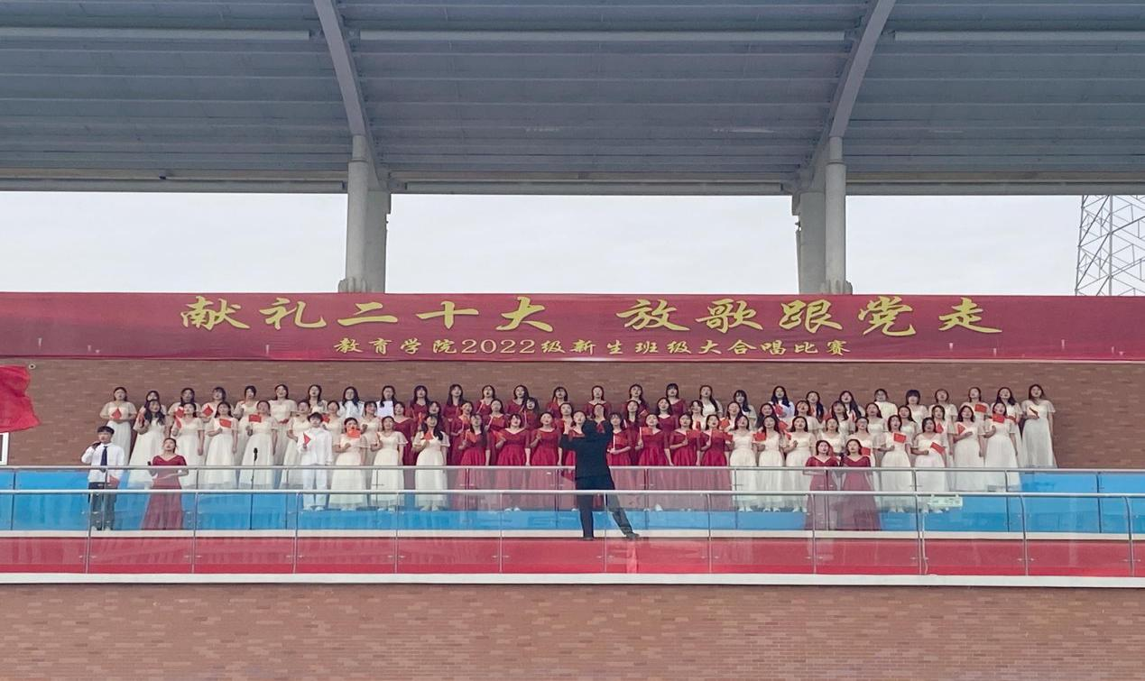 在全国上下认真学习贯彻党的二十大精神之际,beat365中文唯一官网为坚定青年大学生永远跟党走的理想和信念,引导学生赓续红色血脉,厚植爱国情怀,于11月6日上午在校户外操场举办了“献礼二十大,放歌跟党走”2022级新生班级大合唱比赛,莅临比赛现场的有学校副校长汪建利、教务处处长陈国平、后勤保卫处处长程坚、办公室副主任陈杰、beat365中文唯一官网院长王家云、副院长孟向红,校团委书记刘帅克、学生处老师、beat365中文唯一官网全体辅导员以及2022级49个班级的同学,学院2021级辅导员担任了本次大合唱比赛的评委。