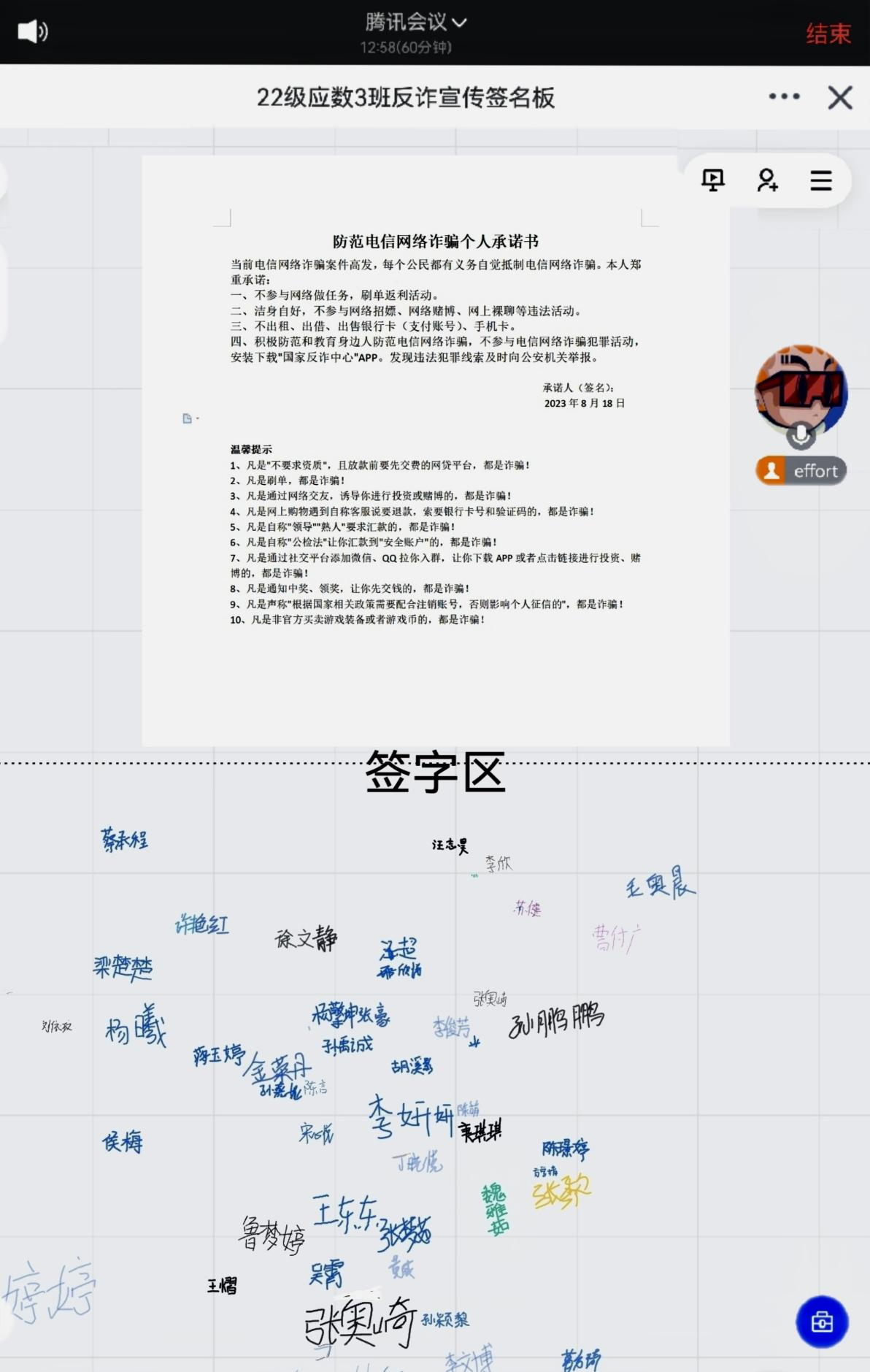 (数学3班开展线上防诈骗个人承诺签字活动)