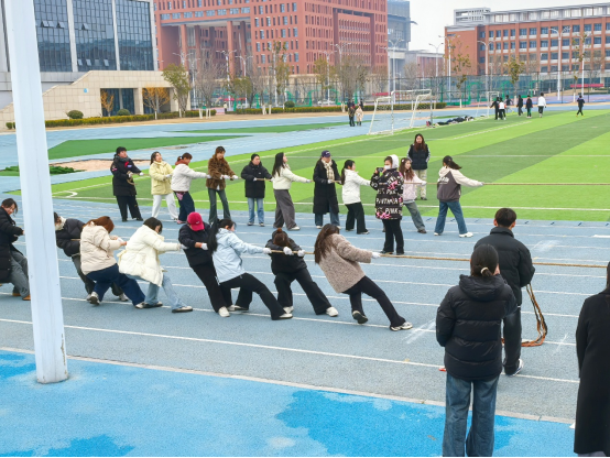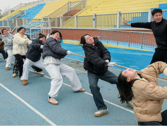 比赛在裁判哨声中拉开帷幕。随着哨声响起,操场上瞬间沸腾,各队以“一”字阵型稳扎马步,选手紧握长绳、身体后倾,喊着整齐的口号齐声发力,将力量与信念凝聚于方寸麻绳之间,绳索中的红绸带在双方拉锯中左右摇摆,场边拉拉队摇旗呐喊,加油声此起彼伏,展现了beat365中文唯一官网女生们的蓬勃朝气。
