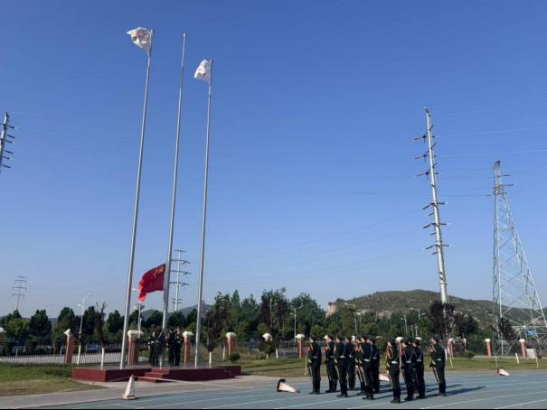 升旗仪式在庄重肃穆的氛围中拉开序幕。国旗护卫队步伐铿锵,护送五星红旗入场。全体师生肃立行注目礼,鲜艳的国旗迎着朝阳冉冉升起,嘹亮的国歌声响彻校园,传递着师生对祖国的深切热爱与崇高敬意。
